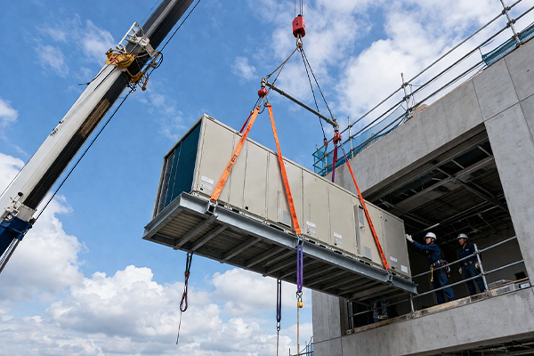 限られた搬入ルート、精密なレベル調整、ミリ単位の位置決め。経験と技術が積み重なった「手」が、機器を正しい場所へと導きます。